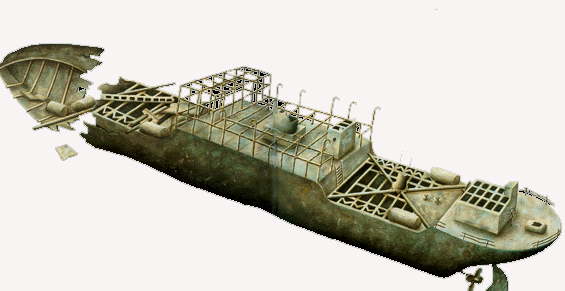 L’épave repose bien droite sur un fond de sable. La poupe se situe à 51 m tandis que la proue se trouve à 48 m. Lors de la descente il est intéressant de faire une petite halte vers 20-25 mètres afin d’admirer le bateau dans son ensemble